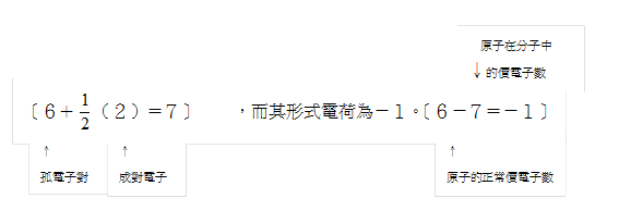 形式電荷=(原子的正常價電子數)-(原子在分子中的價電子數)