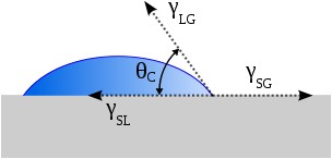 在一個典型的固液氣系統當中(例如固體表面上滴有一滴液珠),一般可以透過接觸角 (contact angle,