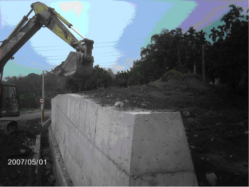 擋土牆是一種建於斜坡的建築物,其功能為防止斜坡的土石崩塌以保護人員和財務的安全。傳統的擋土牆可大致分為重力式擋土牆和懸臂式擋土牆,兩者原理接近,都是以牆身直接擋住山壁,將土壤限制住防止其崩塌。