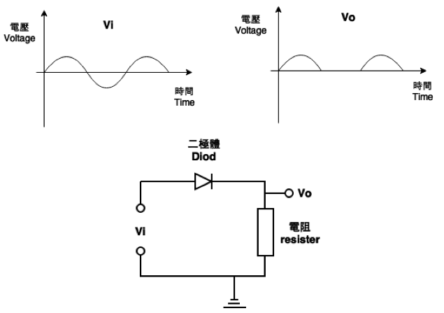 常見的整流器可分為兩個形式:半波整流以及全波整流。半波整流(如圖二)中通常包含一個二極體,只有一半的波形可以通過二極體輸出,令一半的波形則會被阻擋。而全波整流通常包含多個二極體,可將完整的輸入波形轉變成單一方向,優點是輸出的電壓較高,並且根據二極體的配置方式分為兩種形式:橋式整流(如圖三)以及中心抽頭(如圖四)。橋式整流不需使用具有中心抽頭的變壓器,但需使用四個二極體;而中心抽頭式則只需使用兩個二極體,不過達到相同的電壓需要兩倍的變壓器,現今較少使用。除了常見的整流器之外,也有很多複雜的整流器用於特殊的用途上,例如:高速整流器、單分子整流器等等。