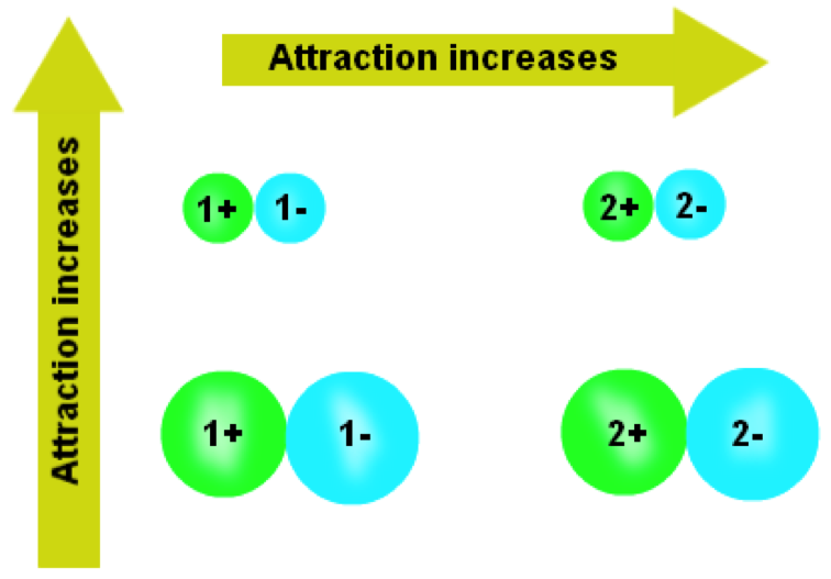 陰離子與陽離子之間存在庫倫作用力彼此吸引,由於此種異性電荷之間的作用力非常強,比一般的凡德瓦力大得很多,故離子化合物大多是以離子晶體的形式存在。因此當陰陽離子結合形成特定晶體時,其焓值改變量決定了晶體的穩定性