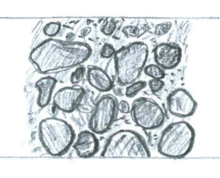 讓我們想想地下水是如何流動的。地層大致上是由大小不一的石塊、土壤所組成的。無論具體的成份是什麼,他們都不是整齊劃一地排列的。我們可以想像一堆大小不同的顆粒,毫無規則地堆在一起,地層大概就像這個樣子(圖一)。這些顆粒之間是有隙縫的,水可以在這些隙縫中流動。然而這些隙縫的分佈是毫無規則的,你可以想像地底下如同有著一堆雜亂無章的水管。