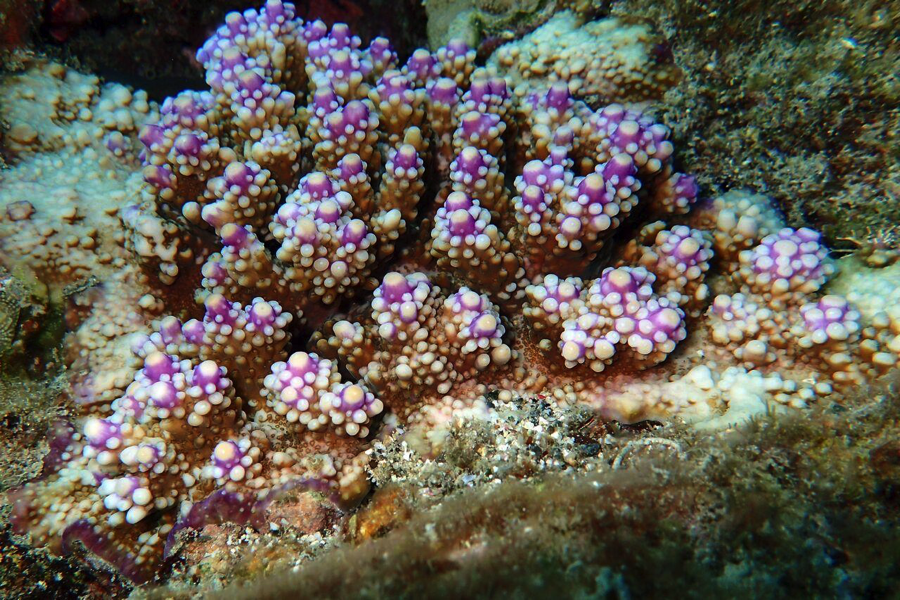 多數的珊瑚體內居住有共生藻(zooxanthellae,蟲黃藻),珊瑚共生藻屬於單細胞的渦鞭藻類,能吸收利用珊瑚蟲的含氮代謝廢物,並將珊瑚排放出的二氧化碳藉由光合作用轉換為醣類,不僅供應共生藻自身生長所需,還能提供珊瑚做為主要營養來源,近年來的研究顯示共生藻製造合成的營養物質約有 20% ~ 95% 都提供給珊瑚,而珊瑚則提供保護使共生藻免於被其他海洋生物捕食,因此珊瑚與共生藻的關係是互利共生 (mutualism) 的絕佳例子。除了提供養分,富含多種色素的共生藻亦賦予了珊瑚五顏六色的外觀(圖四),同時也能促進珊瑚的鈣化速率。一旦失去共生藻,珊瑚將會白化,而且鈣化的速度也將大幅下降,因此是否具有共生藻也常被當作區別造礁珊瑚 (hermatypic coral) 和非造礁珊瑚 (ahermatypic coral) 的一項重要標準。