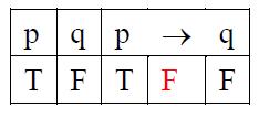 p ⇒ q 的意思是 (p → q) ∧ p → q,那麼p → q 的真值表就與p ⇒ q 不同。