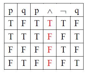 p → q 與 p ∧¬ q 的真假值,剛好相反,並不相同。