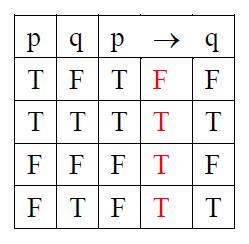 現在問題來了,組成份子既然有真假值,那麼連結起來的蘊涵句該如何決定真假值呢?