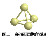 若要呈現同素異形體的概念,磷是一個很好的例子,因為各種型態的磷有其顯著的特性。最常見的兩種同素異形體是白磷和紅磷。磷和砷有許多同素異形體 ,但是以白色與紅色的形式為主。白磷和黃砷都以四個原子排列成四面體結構,其中每個原子以單鍵和另外三個原子鍵結。此結構的元素比其他同素異形體,其特性是最不穩定,最活潑,易反應,低密度且具高毒性。白磷的物理性質:熔點為44 °C,沸點為280 °C以及密度為1.83公斤/升。白磷(P4)分子由四個磷原子形成四面體排列,導致白磷具有非常高的環張力而不穩定。