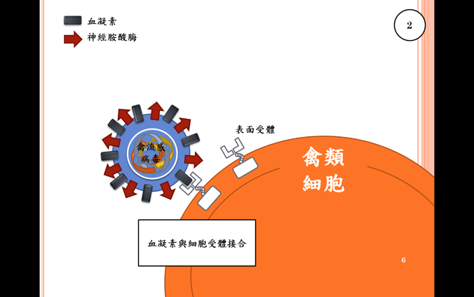 圖一至圖五 血凝素與神經胺酸水解酶作用簡圖(本文作者吳睿穎繪)
