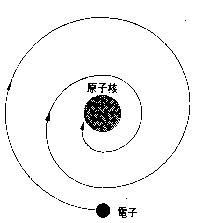 拉塞福(Rutherford)透過α-粒子(氦的原子核,He2+)撞擊薄金箔紙的實驗發現:大部份α-粒子會直接穿過,但仍有極少部分會以大角度反彈。因此推論原子的結構應該是:大部份質量、正電荷集中於中心的極小區域(原子核),而原子核周圍則環繞著帶負電的電子。當然,科學家(包括拉塞福在內)都理解到此模型有著嚴重的問題。根據電磁學理論,帶電粒子做加速度運動的過程中會輻射出電磁波並因此失去能量。若電子繞著原子核做圓周運動,必會輻射出電磁波,導致電子能量漸減,繞核運動的半徑會愈來愈小,最終電子必墜毀於原子核(如圖一所示)。以氫原子為例,電子存在於氫原子的時間約為2×10-11秒,但這與原子的穩定存在不吻合。此外,拉塞福原子模型亦無法解釋原子光譜的不連續性。