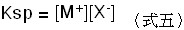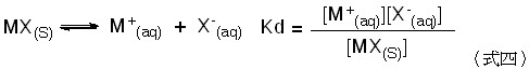 因為鹽類為固體,濃度不變,故Kd可改寫為 Ksp 為式五: