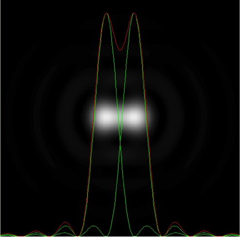 理論上兩點光源通過光學系統成像在平面上是仍是兩個個別的光點,但實際上,當光線通過光學元件時,會因為繞射現象變成一個光波的強度分布,而不再是一個點。以人在看星星為例,當星光(光源)透過人眼的水晶體及瞳孔(光學元件)時就會產生繞射,由於瞳孔是環形構造,因此產生環形的繞射強度分布。