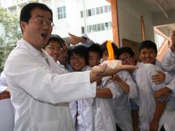 4. 接下來,讓學生們輪流體驗閃光紙的神奇燃燒效果,如圖十三和圖十四所示。
