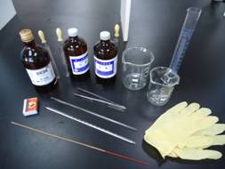 1. 準備閃光紙製作所需要的器材和藥品,如圖一所示。