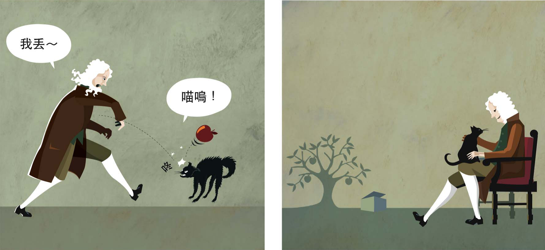 所以古典物理與量子化學是兩個本質上不同,而且在某些方面相互衝突的世界。但是2013年的諾貝爾化學獎得主們,替這兩個世界打開了一扇大門,在他們的模型理,牛頓與他的蘋果,跟薛丁格和他的貓合作。
