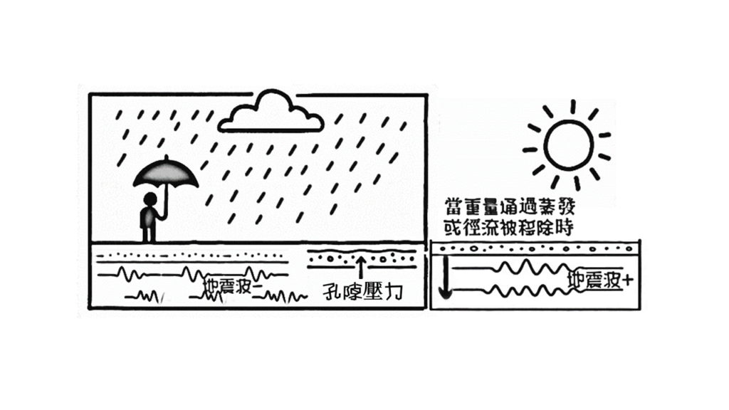 「當下雨或下雪時,會增加重量,從而增加孔隙壓力,使地震波傳播得更慢。…當所有這些重量通過蒸發或徑流被移除時,突然間,孔隙壓力會降低,地震波會更快。」