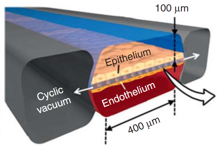 此技術真正的突破,在於它能精準模擬器官在體內的「物理性動力」。以肺臟晶片為例,美國Wyss研究所的科學家們設計了一種巧妙的結構,在中央細胞通道的兩側,各設置了一個可周期性抽真空的側通道。當真空啟動時,會使通道間的柔性薄膜產生規律的拉伸與舒張,完美模擬了人類呼吸時肺泡的機械性擴張。正是這種如呼吸般的物理拉伸,啟動了肺泡上皮細胞的先天免疫反應。暴露在這種機械應變下的肺晶片,使其S100A7蛋白表達顯著上調,從而能有效抑制禽流感乃至普通感冒冠狀病毒的感染。而這樣的防禦機制,是在靜止培養的細胞中觀察不到的,由此可見動態的環境對於重建體內的微環境的重要性。