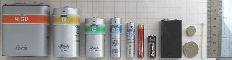 圖1:這些電池 (4.5-Volt, D, C, AA, AAA, AAAA, A23, 9-Volt, CR2032 and LR44 cells) 都是可以回收再利用的。根據《巴塞爾公約》有害廢棄物必須避免跨境運送。(圖片來源:http://en.wikipedia.org/wiki/Basel_convention)