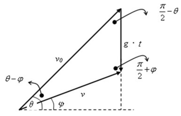 某物體自地面(或離地高 $$h$$)以初速度 $$v_0$$ 與水平夾 $$\theta$$ 角斜向拋出,在出發後時刻 $$t$$ 時,物體的速度為 $$v$$ 且與水平方向夾角 $$\varphi$$: