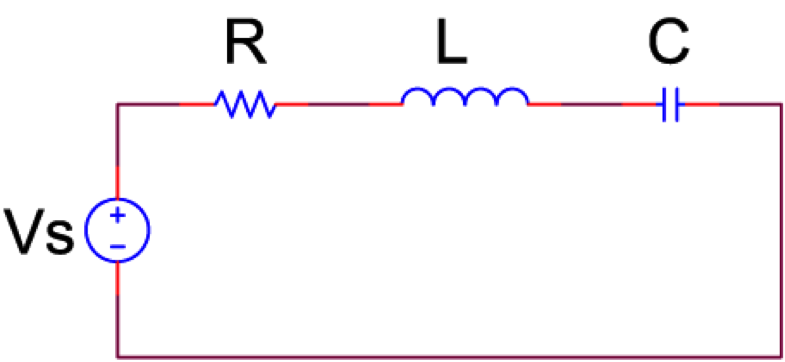 圖(一)的電路是我們要想要了解的典型RLC電路,其中R代表電阻、L代表電感、C代表電容、Vs則代表電壓源。我們想要關心的是,當電壓源的訊號是一個弦波(例如:$$V_0\cos{\omega t}$$)時,這個電路會展現出什麼特性,這些特性又會有什麼用途呢?
