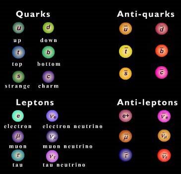 宇宙中所有的物質都是由基本粒子組成的,例如電子、質子、中子、光子、夸克(quark),以及在加速器中找到的微中子、膠子等。 多數的基本粒子都有其對應的反物質粒子,也就是所謂的反粒子。粒子和反粒子的質量、生命期、自旋等性質相同;但電荷、磁矩等性質則相反。