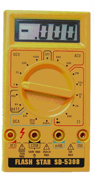 三用電表是由一個圈轉電流計、倍率器、分流器、整流器及電池等組合而成的多功能儀器,由開關的切換,即可分別使其成為直流電壓計、電流計、交流電壓計及電阻計,每一種計器又分為各種單位以適合實際需要。