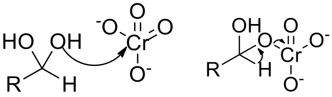 同樣使用六價鉻當氧化劑,在二甲基甲醯胺 (N,N-dimethylmethanamide) 和二氯甲烷 (dichloromethane) 中反應的結果不同,因為二甲基甲醯胺能像水一樣與醛化合,形成類似二醇的結構,進一步氧化成酸;二氯甲烷沒有這樣的能力,醇氧化到醛的時候就停止了,不再繼續氧化。