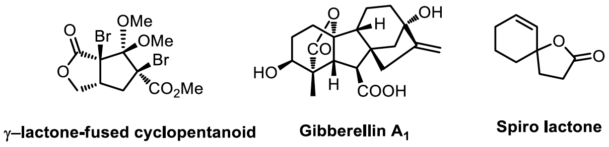 內酯廣泛存在於天然物結構中,有些具有生物活性以及藥性,如圖四為根據文獻舉例之含內酯結構之天然物。4