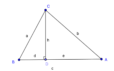 因為 \(\left\{ \begin{array}{l} c = d + e………\left( 1 \right)\\ {a^2} = {h^2} + {d^2}……\left( 2 \right)\\ b{}^2 = {h^2} + {e^2}……(3) \end{array} \right.\),