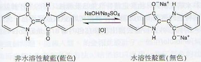 圖二:靛藍及其leuco-base的分子結構式(引自生活與化學2)