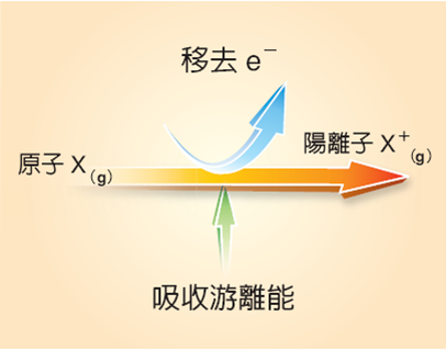 游離能即為移出氣態原子最高能階軌域之一個電子所需的能量,而從原子中移出電子其過程必須提供能量,為吸熱反應,因此反應熱 \(\Delta H\) 必為正值。