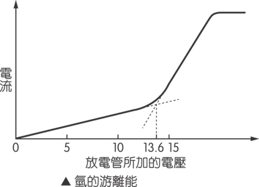 \(\Delta E=13.6\times(\frac{1}{1^2}-\frac{1}{\infty^2})=13.6~eV/\) 個