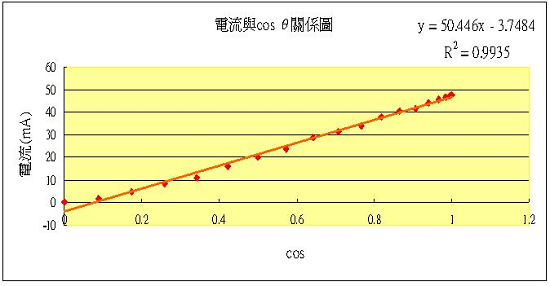 4. 固定量角器,測量不同角度時的電壓與電流(五)實驗討論