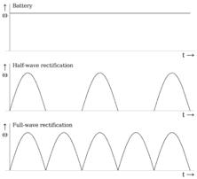 但是像半波電流或全波電流,因為電流大小並不固定,所以其實還是可以經由變壓器產生電壓的升降,例如電蚊拍與汽機車引擎的點火系統就是明顯的例子,單純的汽車蓄電池,是輸出12伏特的,但是憑藉著這麼低的電壓是無法點燃火星塞,進而引爆汽缸內的汽油蒸氣,因此必須事先升高電壓到大約兩萬伏特,因此如果沒有靠變壓器是無法達成的。