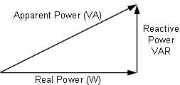 三這之間的關係為:表現功率2=實際功率2+反應功率2 這種表示式稱為電功率三角形。用向量來表示:實際電功率是水平向量,而反應電功率為鉛直電功率。 實際電功率與反應電功率可以用表現電功率來表示,即:實際電功率=表現功率*cos(θ) 反應電功率=表現功率*sin(θ) 實際電功率與表現電功率的比值稱為電功率因子,是介於0到1的數。