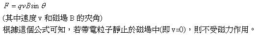 所以我們知道,一個帶電粒子所受到的磁力為: