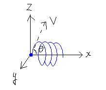 電荷移動的速度垂直磁場:速度垂直磁場,夾角θ=90˚或270˚,此時磁力為:F=qvb(方向垂直電荷的速度),因此,原本作直線運動的電荷,受到這個法線力的影響,會開始作等速率圓周運動(因為把垂直的磁力視為向心力)。 電荷移動的速度和磁場夾θ角:因為夾θ角,所以速度平行磁場的分量會依然往前作等速度直線運動,而垂直磁場的分量會作等速率圓周運動,將兩個分量結合起來,則會發現,電荷在空間中作等速率螺旋運動(如下圖)。分析上面的運動軌跡後,我們發現,帶電粒子在磁場中必作等速率運動。 在應用方面,科學家利用電荷速度垂直磁場會作等速率圓周運動的原理,製造了質譜儀,它可用來測量帶電粒子的質量和鑑別同位素,原理是將帶電粒子加速垂直射入磁場,此時