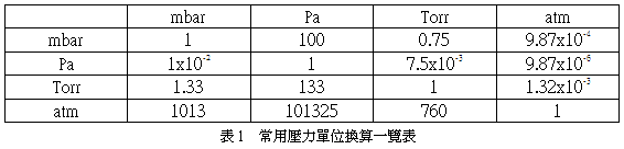 壓力單位換算如表1。