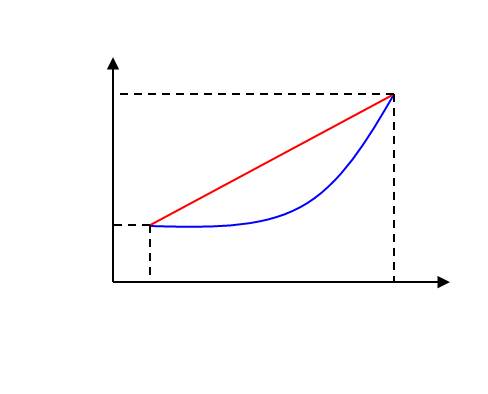 以圖一舉例說明,其中藍色的曲線代表運動的位移-時間圖,而紅色的直線代表以 $$\overline{V}$$ 等速度運動。換句話說,我們假想此運動為從起始時間 $$t_a$$,起始位置 $$S_a$$,以速度 $$\overline{V}$$ 移動的運動,最後在時間 $$t_b$$ 時到達 $$S_b$$,雖然這個等速度運動和原來的運動過程相去甚遠,但是其效應是一樣的:一樣的起始位置和時間,並經過相同的時間 $$\Delta t=t_b-t_a$$ 到達 $$S_b$$。
