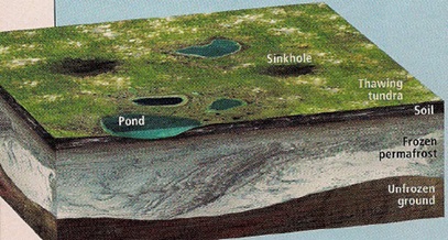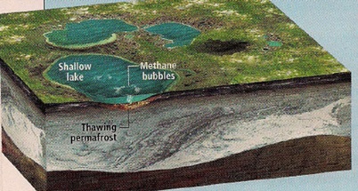 由於溫室效應越來越嚴重,溫度不斷上升,使得無數在極地(北極)湖泊底部的永凍土(Permmafost)逐漸在解凍,甲烷(CH4)釋放到大氣裡,一個CH4分子的溫室效應是一個二氧化碳分子的25倍,加速全球暖化。在新研究指出,在2100年以前,解凍中的永凍土會繼續增加,導致CH4的排放量增加20~40%,遠超過其他天然和人為的來源。