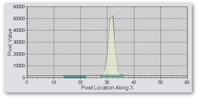 下圖為CCD影像中其中一顆星星的信號強度二維分布圖,可以明顯看出中央信號較強的部份即是星點所在之處。