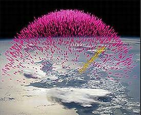 科學家利用美國國家航空暨太空總署的費米伽瑪射線太空望遠鏡(NASA’s Fermi Gamma-ray Space Telescope)在雷電風暴上方發現反物質束,締造首次地球上,反物質在自然狀態下出現的記錄。(圖片來原:NASA)