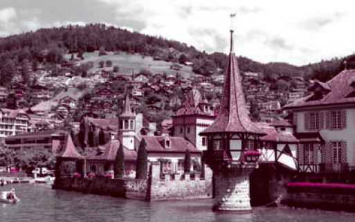 法拉第在瑞士旅遊時曾到訪的上霍芬(Oberhofen) 根據法拉第的札記他在1841年7月19日曾與妻子莎拉散很長的步到圖恩湖(Lake Thun)畔的寧靜村落上霍芬。
