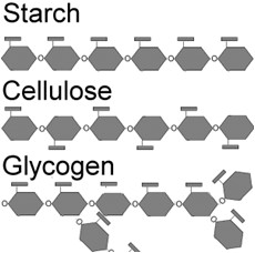 多醣類由於其分子量大,一般而言是不溶於水,且無法直接被人體吸收。通常多醣的代謝途徑,都是透過酵素的協助,以使得多醣分解成單醣,再經由如糖解作用 (glycolysis)等方式被人體利用。而且,由於多醣的具還原性的官能基幾乎都在聚合過程中被拿來形成醣苷鍵(glycosidic bond),因此多醣屬於非還原醣。根據單糖間結合方式的不同,可以將常見多醣大致分類為纖維素(cellulose)、澱粉(starch)、肝糖 (glycogen),以及截肢動物外骨骼中的甲殼素(chitin)(圖一)。